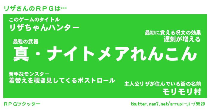 | 男性向けラノベタイトル風あだ名 | 『リザアートオンライン』 |