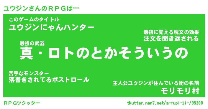| 男性向けラノベタイトル風あだ名 | 『ユウジンアートオンライン』 |