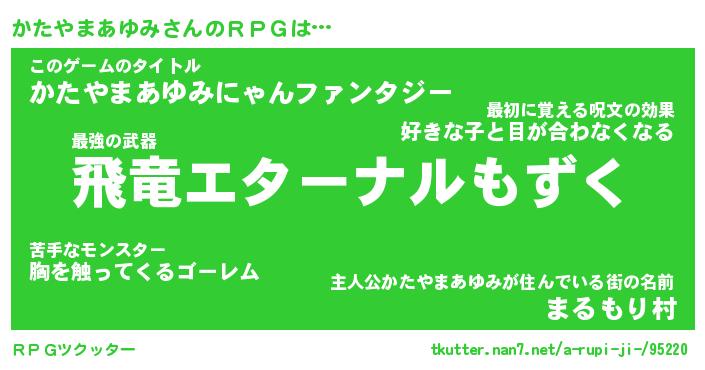 | 男性向けラノベタイトル風あだ名 | 『カタヤマアユミアートオンライン』 |