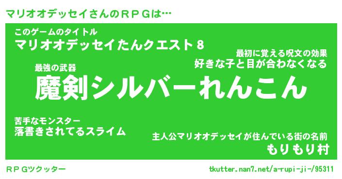 | 男性向けラノベタイトル風あだ名 | 『マリオオデッセイの憂鬱』 |