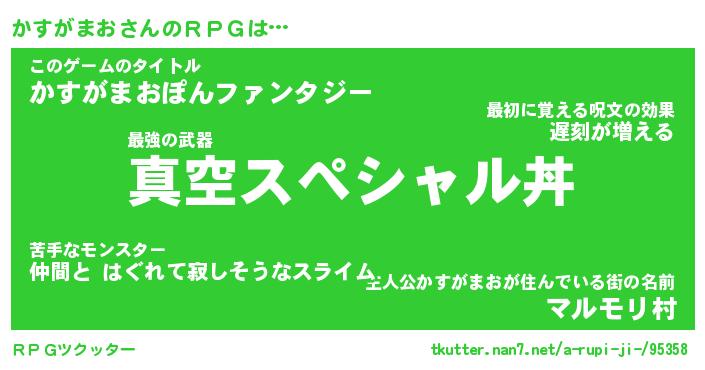 | 伝説のあだ名 | 『封印されし竜騎士かすがまお』 |