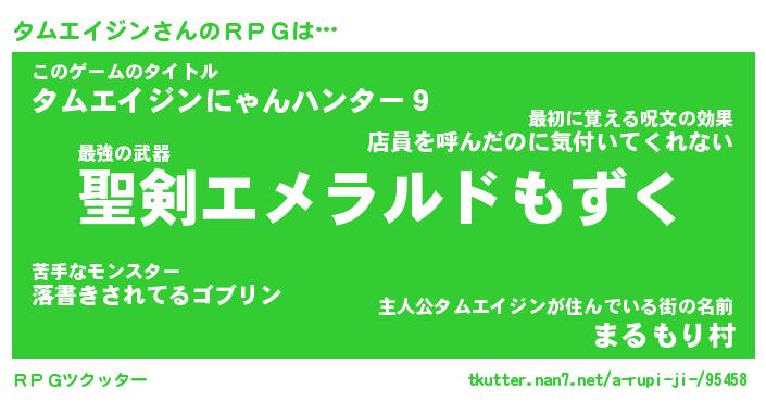| 男性向けラノベタイトル風あだ名 | 『タムエイジンの憂鬱』 |