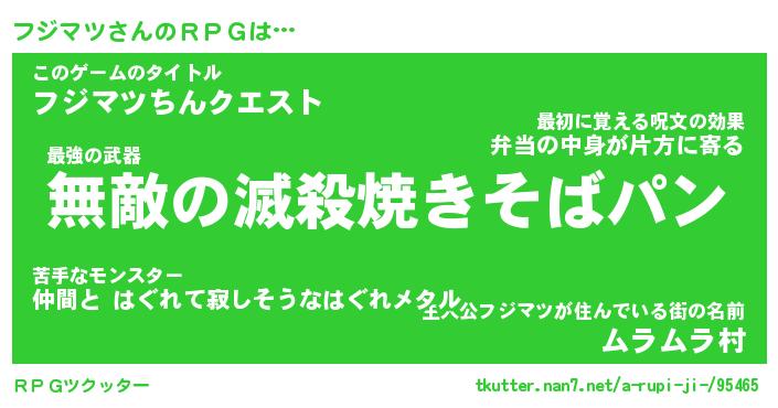 | 男性向けラノベタイトル風あだ名 | 『フジマツアートオンライン』 |