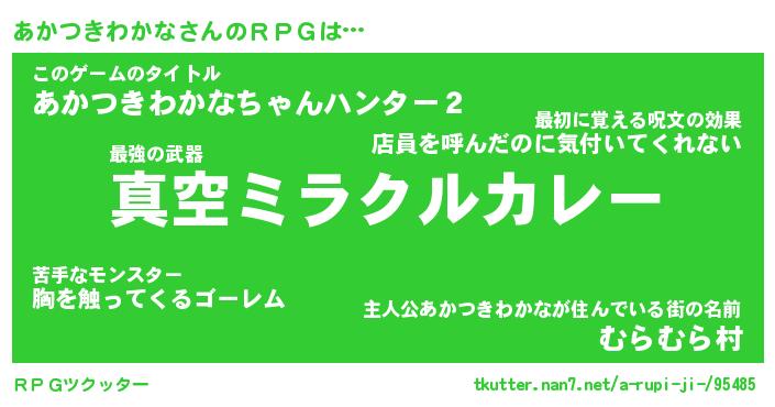 | 男性向けラノベタイトル風あだ名 | 『アカツキワカナアートオンライン』 |