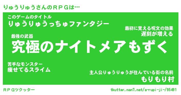 | 男性向けラノベタイトル風あだ名 | 『リュウリュウアートオンライン』 |