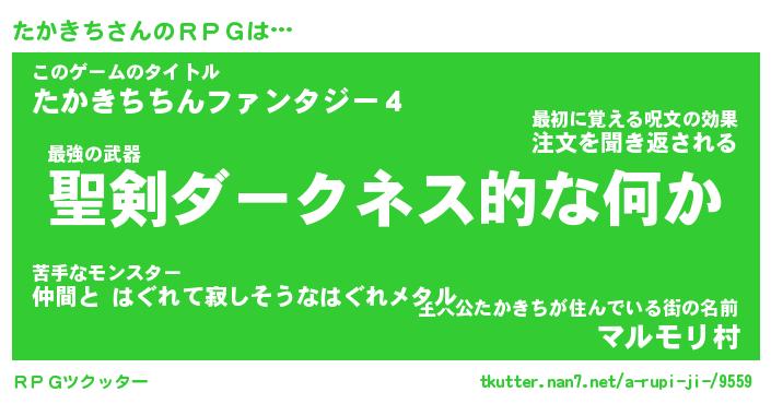 | 男性向けラノベタイトル風あだ名 | 『たかきちの憂鬱』 |