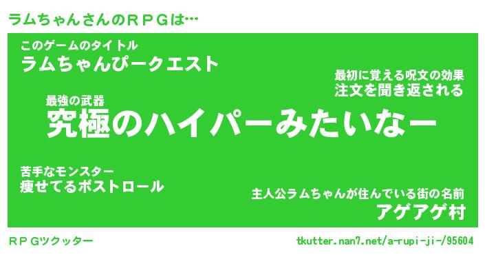 | ファンタジー風あだ名 | 『ラムフェル』『エターナルラムチャンー』 |