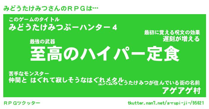 | 料理風あだ名 | 『節約★みどうたけみつと油揚げの玉子丼』 |
