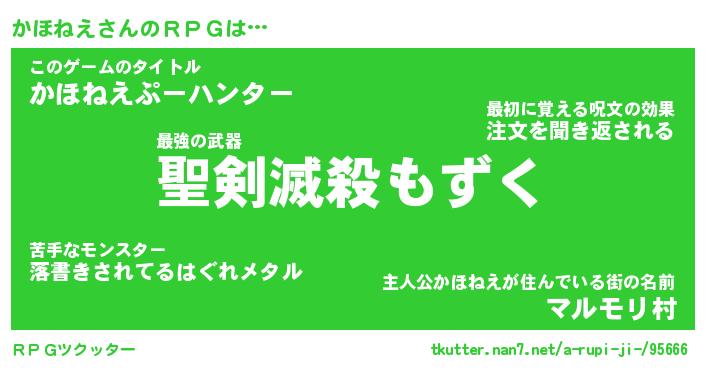 | 伝説のあだ名 | 『伝説のスナイパーかほねえ』 |