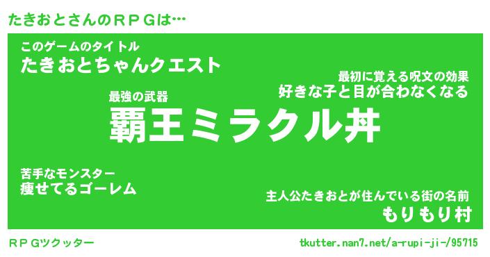 | 伝説のあだ名 | 『封印されし竜騎士たきおと』 |