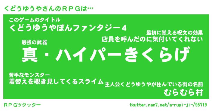 | ヒーロー風カッコイイあだ名 | 『スーパークドウユウヤ』『魔戒騎士クド』 |