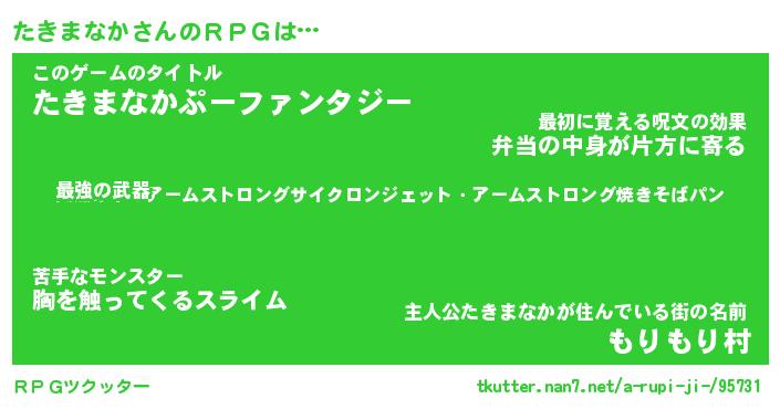 | ファンタジー風あだ名 | 『タキフェル』『エターナルタキマナカー』 |