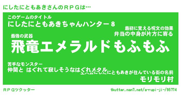 | 伝説のあだ名 | 『封印されしスナイパーにしたにともあき』 |