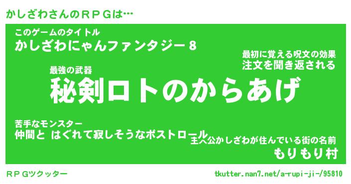 | ファンタジー風あだ名 | 『カシフェル』『エターナルカシザワー』 |