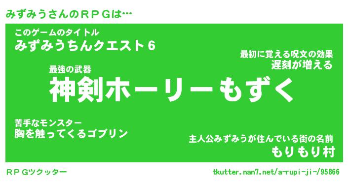 | ファンタジー風あだ名 | 『ミズフェル』『エターナルミズミウー』 |