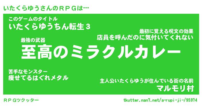 | 男性向けラノベタイトル風あだ名 | 『イタクラユウアートオンライン』 |
