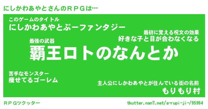 | 伝説のあだ名 | 『封印されし竜騎士にしかわあやと』 |