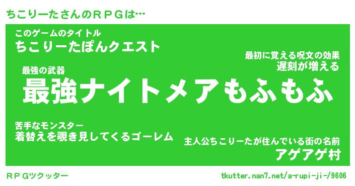 | 女子向けラノベタイトル風あだ名 | 『ちこりーた姫と円卓の騎士』 |