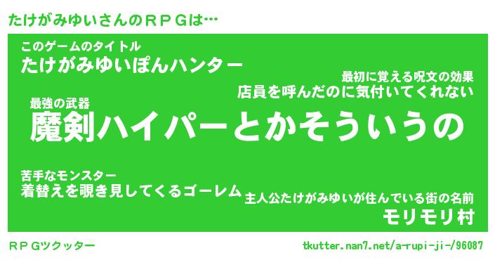 | 胡散臭い通販商品みたいなあだ名 | 『必ず成功するブレスレット…その名も「たけがみゆい」』 |