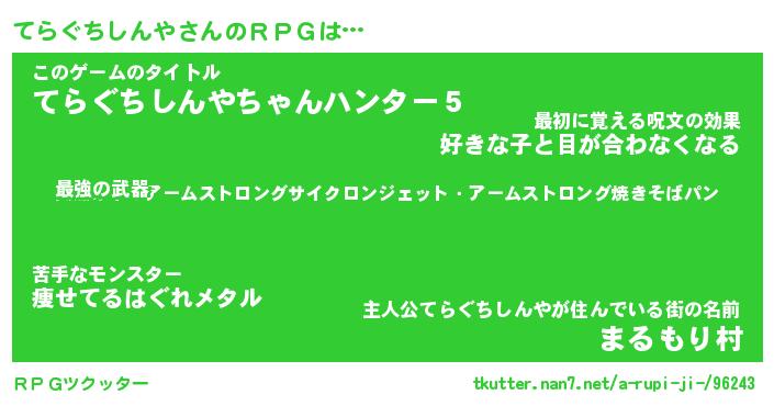 | 伝説のあだ名 | 『不死鳥の竜騎士てらぐちしんや』 |