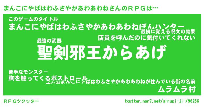 | 伝説のあだ名 | 『伝説の傭兵まんこにやばはわふさやかあわあわね』 |