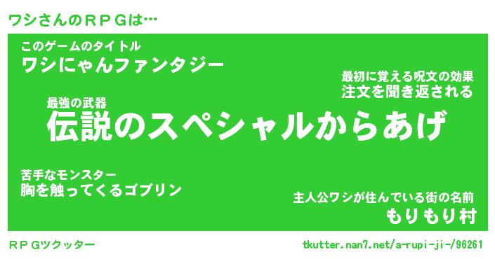 | ファンタジー風あだ名 | 『ワシフェル』『エターナルワシー』 |