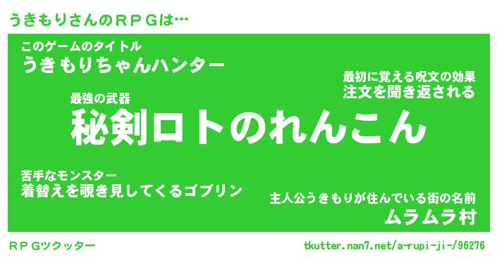 | ファンタジー風あだ名 | 『ウキフェル』『エターナルウキモリー』 |