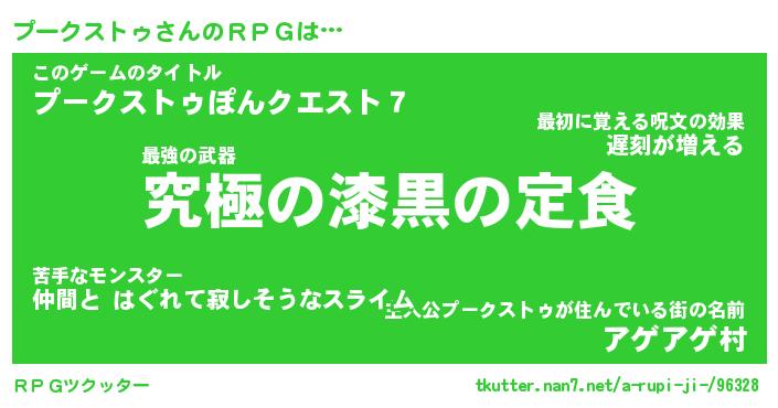 | 男性向けラノベタイトル風あだ名 | 『プークストゥの憂鬱』 |