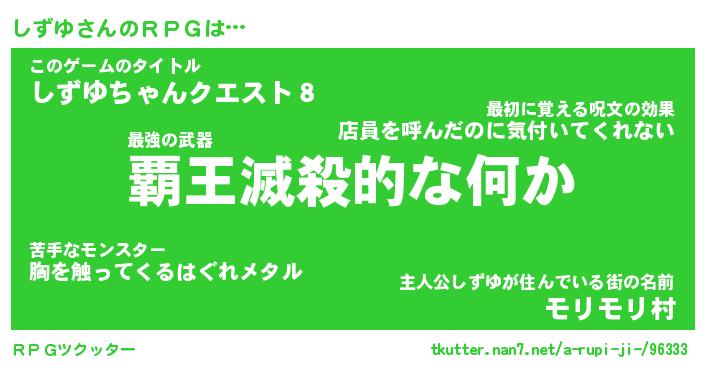 | ファンタジー風あだ名 | 『シズフェル』『エターナルシズユー』 |