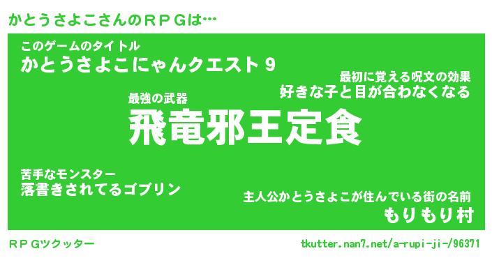| 男性向けラノベタイトル風あだ名 | 『カトウサヨコアートオンライン』 |