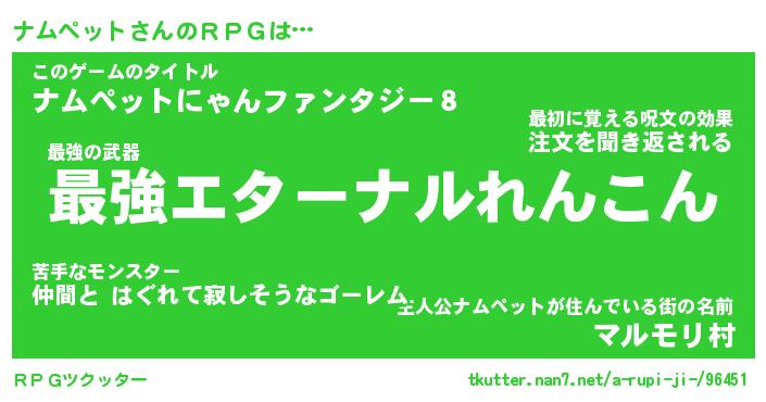 | ファンタジー風あだ名 | 『ナムフェル』『エターナルナムペットー』 |