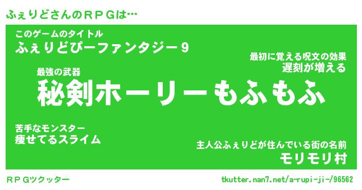 | 女子向けラノベタイトル風あだ名 | 『ふぇりど姫と円卓の騎士』 |