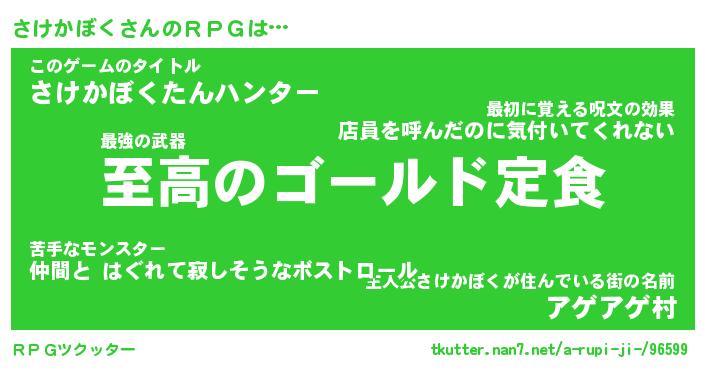 | 男性向けラノベタイトル風あだ名 | 『サケカボクアートオンライン』 |