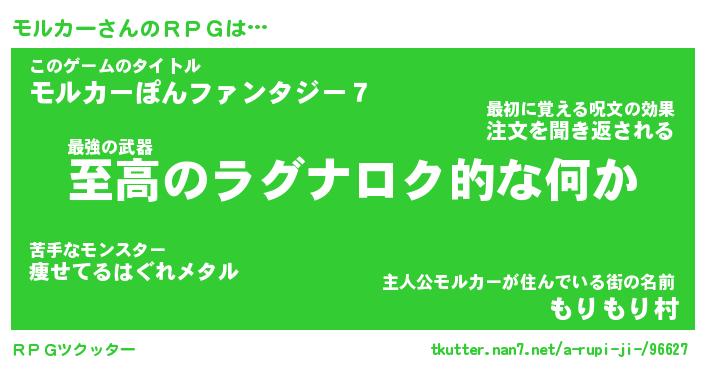 | 男性向けラノベタイトル風あだ名 | 『モルカーアートオンライン』 |