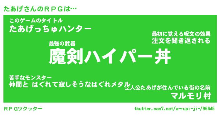 | 男性向けラノベタイトル風あだ名 | 『たあげの憂鬱』 |