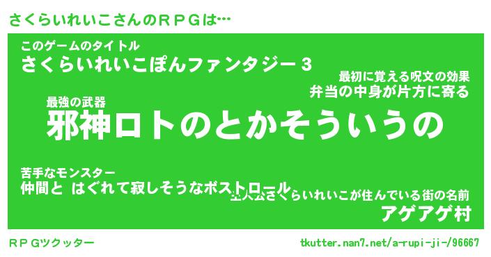 | ヒーロー風カッコイイあだ名 | 『スーパーサクライレイコ』 |