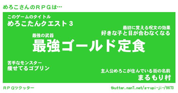 | 女子向けラノベタイトル風あだ名 | 『めろこ姫と円卓の騎士』 |