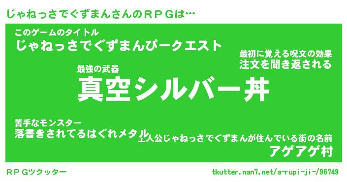 | 胡散臭い通販商品みたいなあだ名 | 『億万長者になれる水晶球…その名も「じゃねっさでぐずまん」』 |