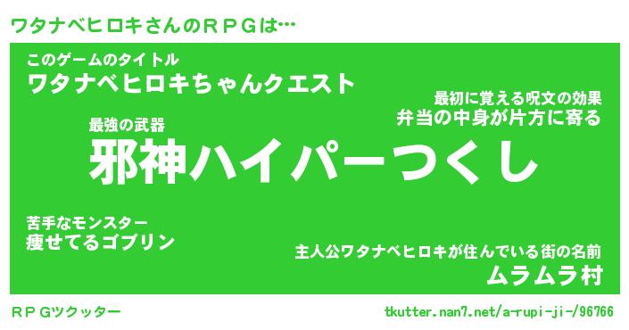 | 男性向けラノベタイトル風あだ名 | 『ワタナベヒロキアートオンライン』 |