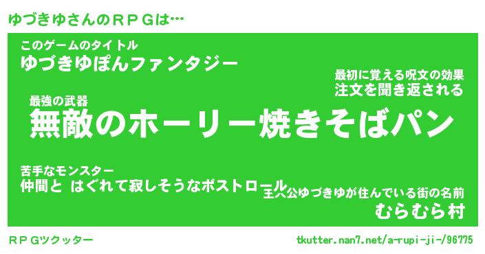 | ファンタジー風あだ名 | 『ユヅフェル』『エターナルユヅキユー』 |