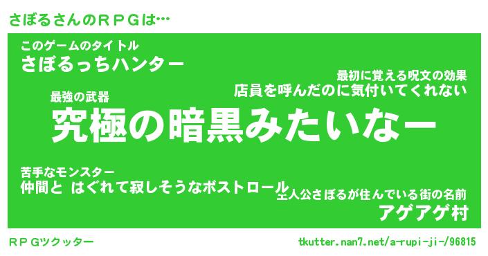 | ファンタジー風あだ名 | 『サボフェル』『エターナルサボルー』 |