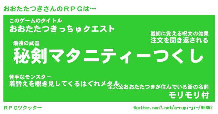 | 胡散臭い通販商品みたいなあだ名 | 『モテモテ間違いなし霊験あらたかなお札…その名も「おおたたつき」』 |