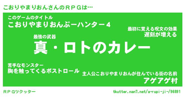 | 胡散臭い通販商品みたいなあだ名 | 『億万長者になれるブレスレット…その名も「こおりやまりおん」』 |