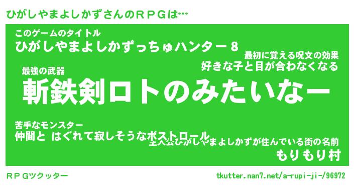 | ヒーロー風カッコイイあだ名 | 『スーパーヒガシヤマヨシカズ』 |