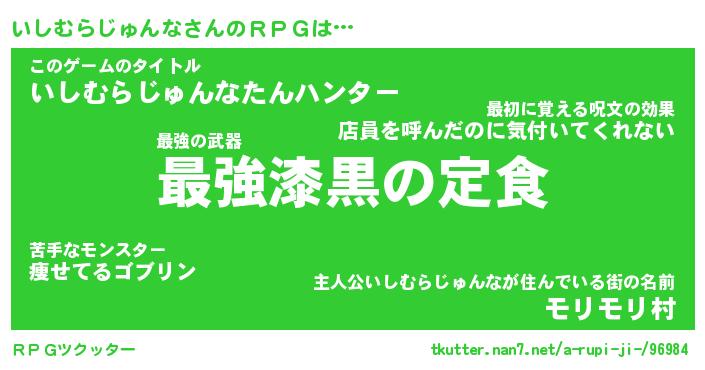 | 男性向けラノベタイトル風あだ名 | 『イシムラジュンナアートオンライン』 |