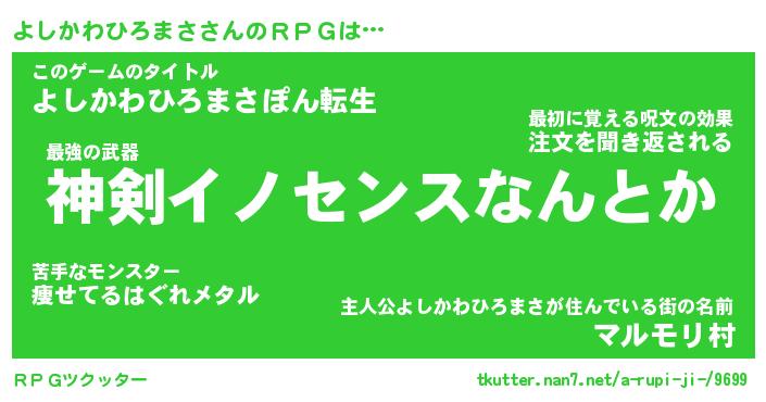 | 肩書あだ名 | 『よしかわひろまさ御曹司』 |