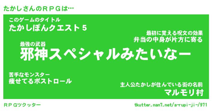 | 伝説のあだ名 | 『封印されし竜騎士たかし』 |