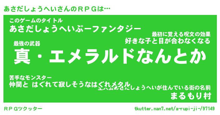 | 伝説のあだ名 | 『封印されしスナイパーあさだしょうへい』 |