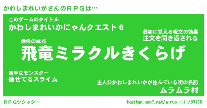 | 伝説のあだ名 | 『封印されし竜騎士かわしまれいか』 |
