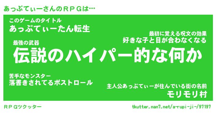 | 伝説のあだ名 | 『不死鳥の竜騎士あっぷてぃー』 |